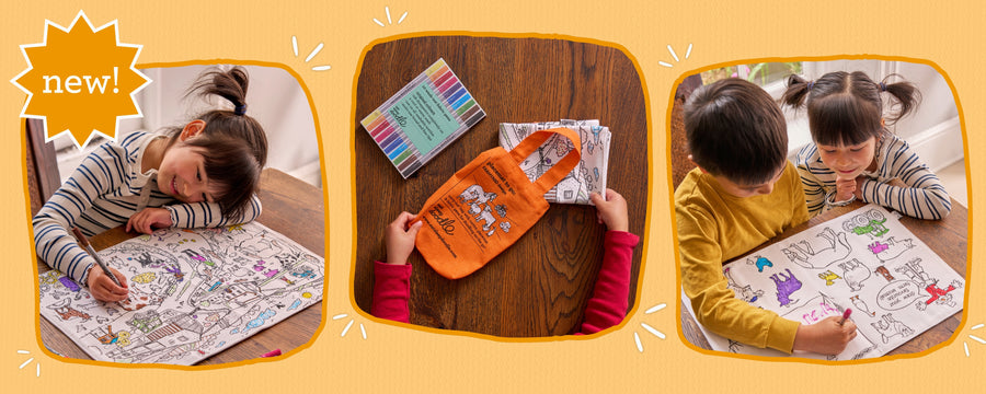 fun & educational gifts, from pillowcases to placemats and tablecloths to pencil cases all to colour-in and customise with 10 wash-out fabric pens!