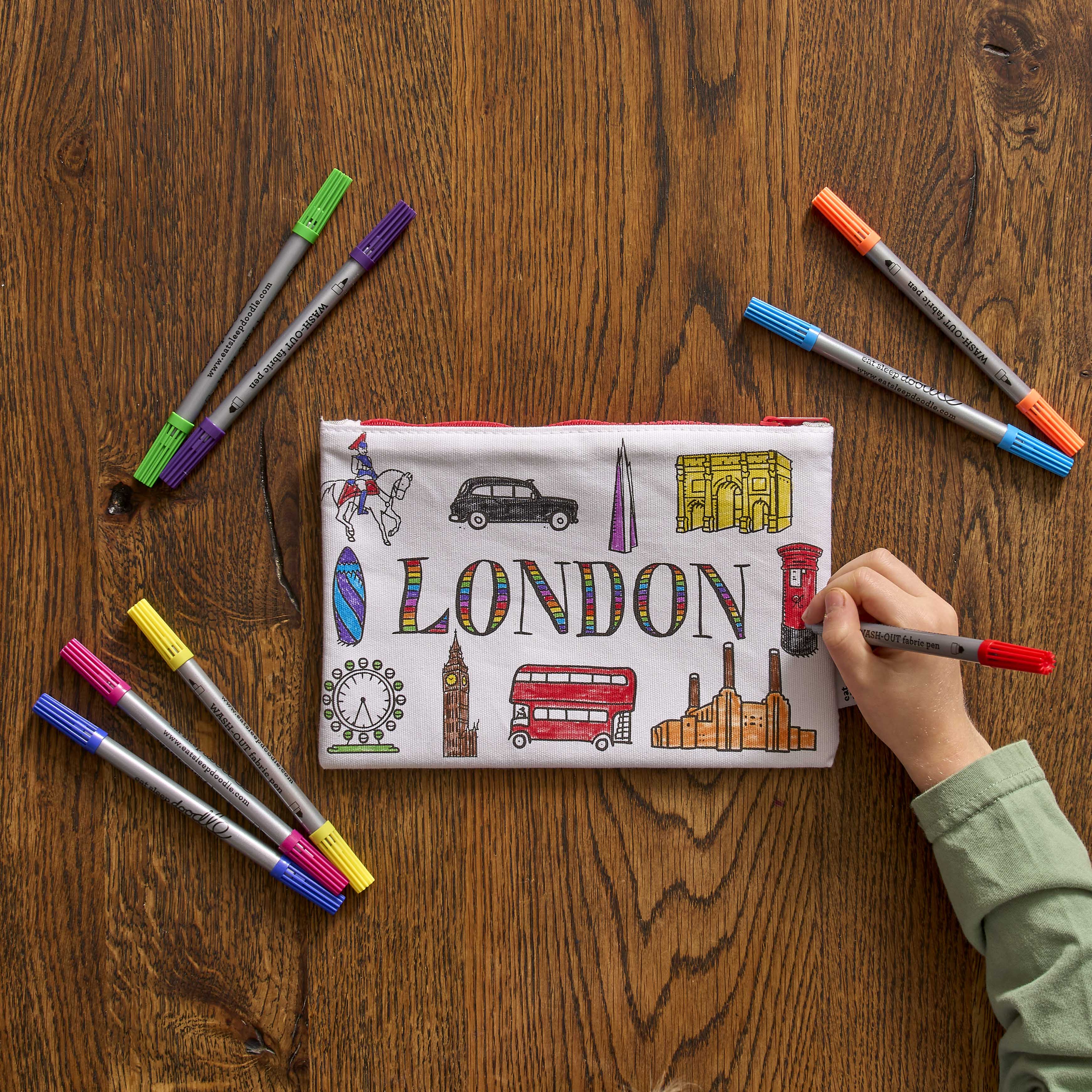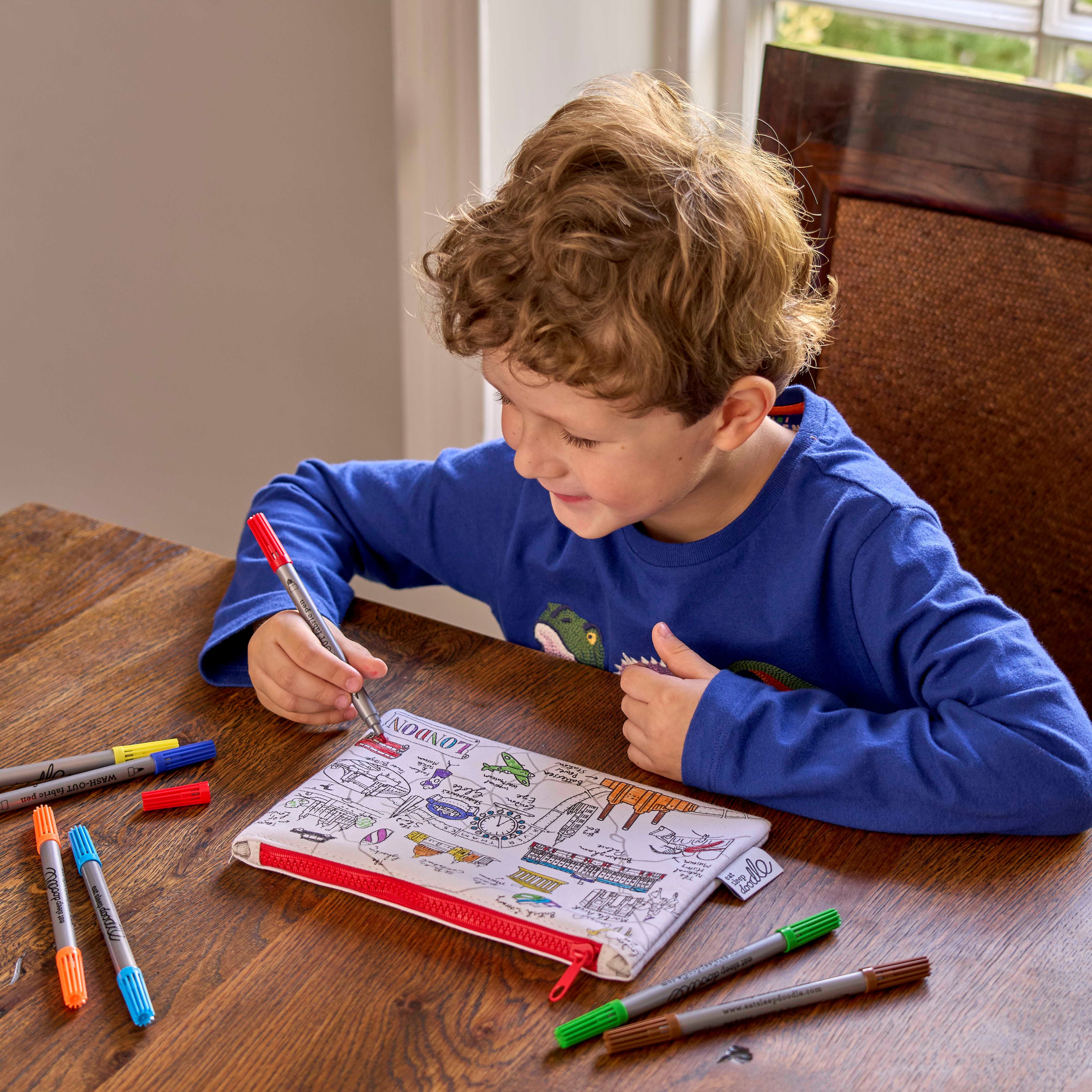 The ideal London accessory for girls and boys, this pencil case you can draw on makes a great sustainable gift for birthdays, Christmas stocking filler, and the best London art activity for kids!